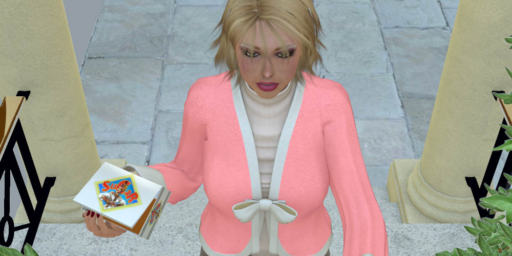 She is carrying a box and Walter figures she must be selling something. He considers not acknowledging her strong knock and patient presence on his front porch. He would prefer that she went away, but on an impulse he activates the intercom.