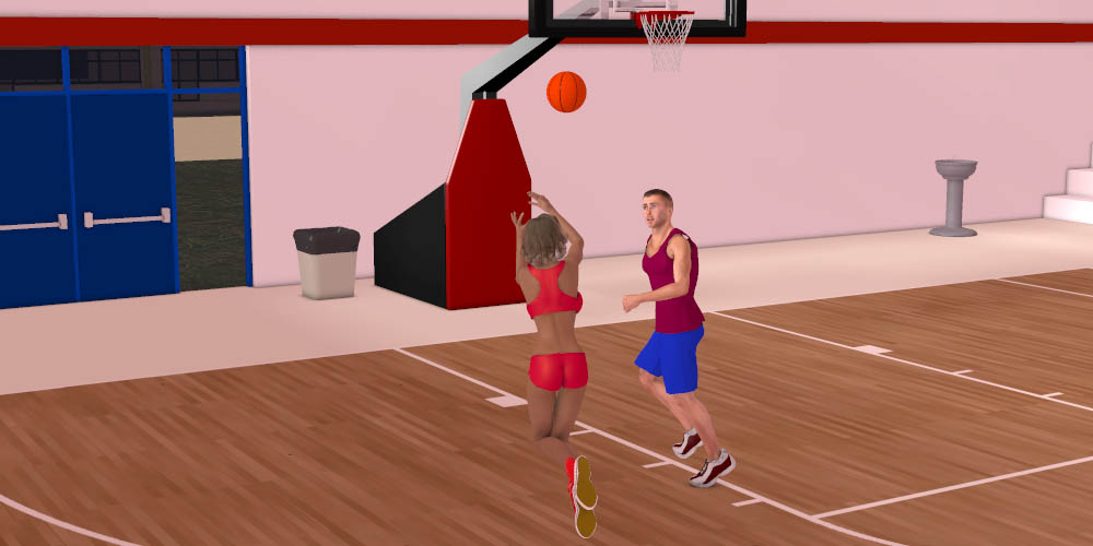 Anne: My shoes squeak on the floor which gets his attention - but it's too late, I put up a shot from just outside the key.