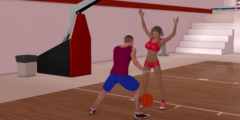Anne: He's no slouch, I have to keep watching his hips because his arms and legs keep making like he is about to go in some other direction that he ends up actually going. He works his way under the basket and then dashes out and spins and goes for a layup.