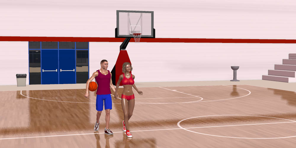 Anne: I convince him that if nobody saw the ball go in, then I won and my prize is for him to show me the boys' locker room. He thinks that's weird. Nobody else is around, but I still have to practically drag him along.