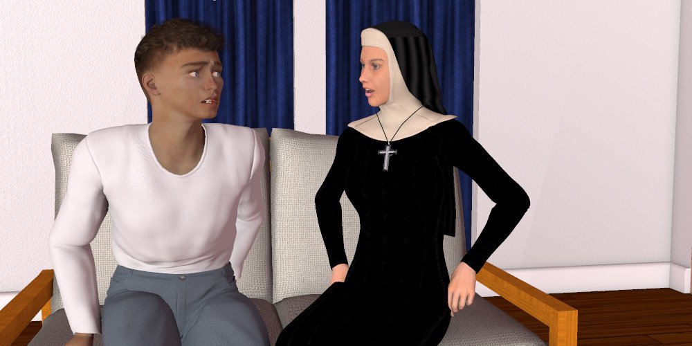Kyle is astonished to see tears form in the wells of the nun's eyes and anger written on her face like judgment itself. Sister Isabella: All of these things happened to you at that awful place? God damn their black hypocritical hearts! I knew it was bad, but I had no idea! Kyle: How can you say that? You're a, you're one of them! Sister Isabella: People like them have perverted the purpose of this church. Lies and distortions made it a vast betrayal of the very nature of man and especially womankind. I'm nothing like them, nothing like them at all. Put you head back Kyle, let me speak plainly to you while you listen without the distraction of me sitting next to you